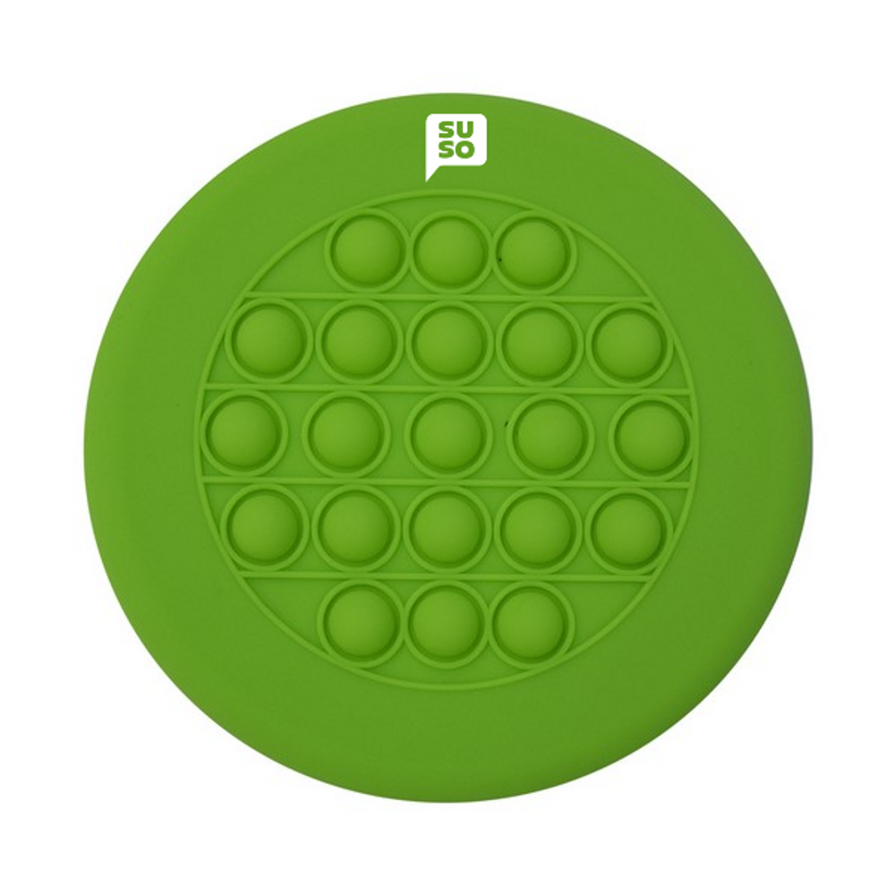 sku: 80004Made Of Soft Silicone Material. Fun Stress Reliever. Press Bubbles Down To Relieve Stress. Make Your Own Pattern By Pressing On Different Bubbles Or Just Press For Fun . Encourages Focus And Self-Soothing For Users With Anxiety, Attention Disorders And More . Perfect For Reducing Stress And Boredom . Fun For All Ages 3+. Complies with Prop 65. 6 3/8" Diameter.